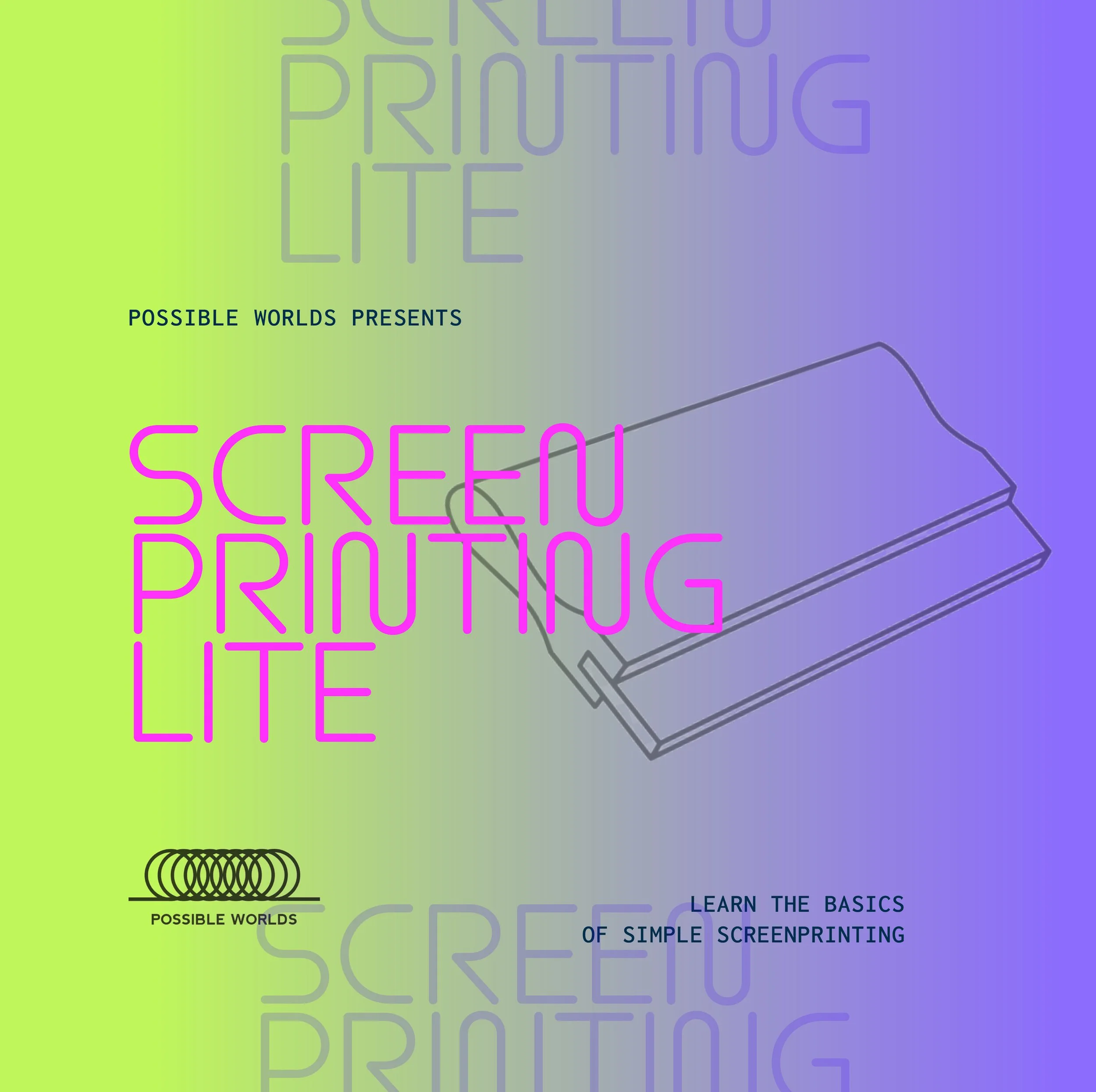 Includes a resusable Screenprinting Kit = squeegee + a blank screen to take home and keep printing.